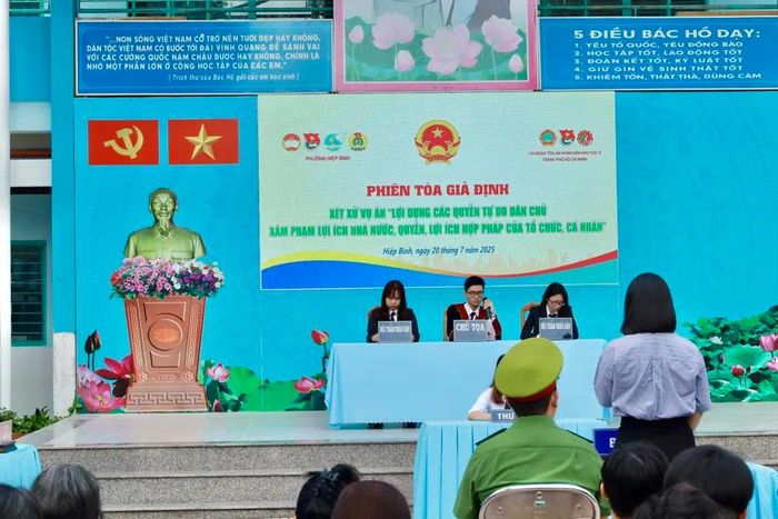 Sáng 20-7, Chi đoàn Thanh niên TAND khu vực 2 TP.HCM (TAND TP Thủ Đức cũ) phối hợp với phường Hiệp Bình tổ chức phiên tòa giả định xét xử vụ án lợi dụng các quyền tự do dân chủ xâm phạm lợi ích Nhà nước, quyền, lợi ích của tổ chức cá nhân.