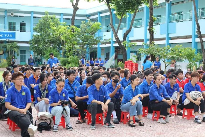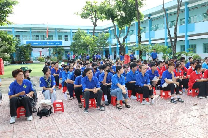 Rất đông học sinh, đoàn viên thanh niên theo dõi phiên tòa. Ảnh: HỮU ĐĂNG