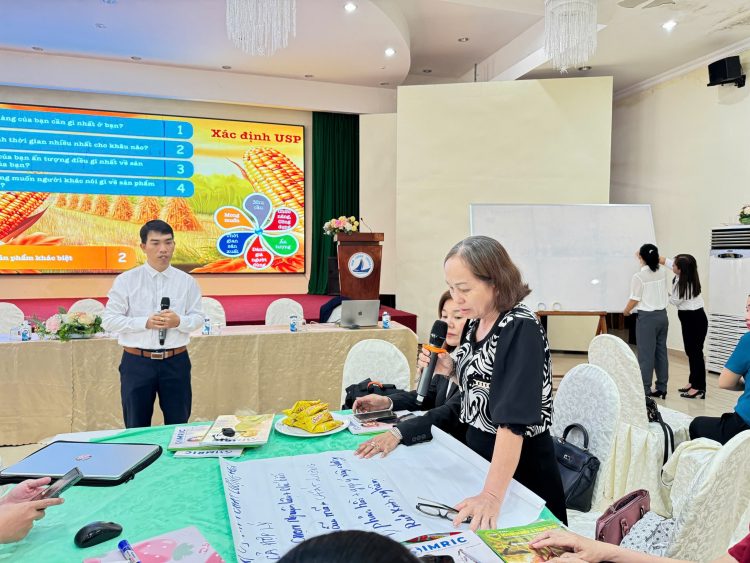 Hội nghị Tập huấn diễn trong vòng 1 ngày, các hội viện, doanh nghiệp, thanh niên được nghe ThS. Huỳnh Tấn Cảnh – Chuyên viên cao cấp công nghệ thông tin của Viện IMRIC, phổ biến các kiến thức về: Thương mại điện tử cho sản phẩm OCOP; Xu hướng thương mại điện tử, xác định Unique Selling Poin (Điểm bán hàng khác biệt), xây dựng hệ thống bán hàng liên kết (Affiliate), xây dựng lời chào bán hàng hấp dẫn, Tạo trang bán hàng trên các sàn TMĐT (Lazada, Shoppee, Tiki, Tik Tok Shop, FaceBook…).