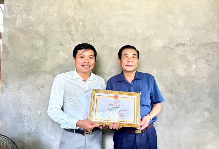 Ông Hồ Phú Quốc Cương thay mặt Doanh nhân Đào Hải Thắng nhận bằng khen của Chủ tịch UBND tỉnh Bến Tre