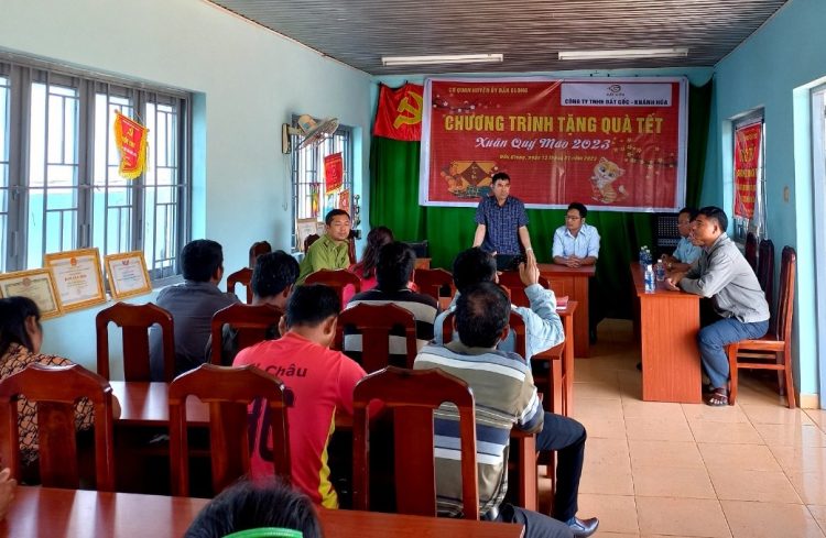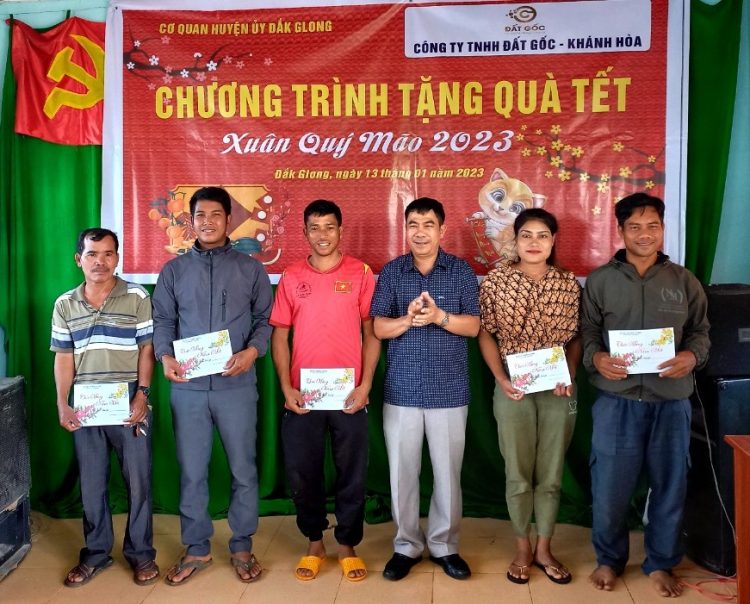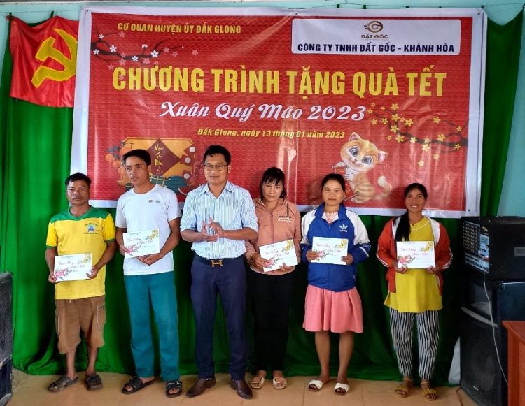 (CSPLO) – Hưởng ứng phong trào “Cả nước chung tay vì người nghèo” và nêu cao tinh thần “Lá lành đùm lá rách” của dân tộc. Viện Nghiên cứu Thị trường – Truyền thông Quốc tế (IMRIC), Viện Nghiên cứu Chính sách pháp luật&Kinh tế hội nhập (IRLPIE), Cơ quan đại diện phía Nam Tạp chí Nhiếp ảnh và Đời sống đã vận động đơn vị thành viên Cty TNHH Đất Gốc (Khánh Hoà) trao tặng 50 phần quà Tết (mỗi phần 400.000VND) tại huyện Đắk Glong, tỉnh Đắk Nông nhằm động viên, hỗtrợ kịp thời các gia đình có hoàn cảnh khó khăn vươn lên trong cuộc sống. Với hy vọng những phần quà sẽ giúp các gia đình có thêm miền vui để cùng đón Tết Nguyên đán Quý Mão 2023 trong không khí vui tươi, phấn khởi.