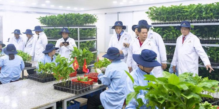 Đoàn đã đến tham quan vườn ươm giống chanh dây Đài Loan ứng dụng công nghệ Israel CLC của Công ty Cổ phần Quốc tế Thông Đỏ ở xã Ia Le, Gia Lai
