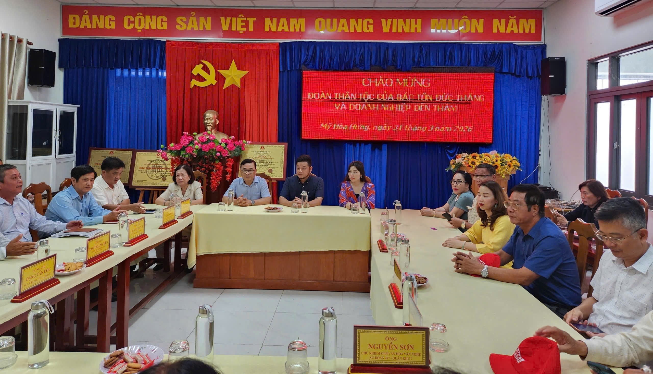 (CSPLO) – Trong khuôn khổ chuyến công tác về nguồn nhân kỷ niệm 46 năm Ngày mất Chủ tịch Tôn Đức Thắng. Chiều ngày 31/3, Đoàn Doanh nhân Sài Gòn và Hội đồng họ Mai tại TP.HCM đã có buổi thăm, tìm hiểu về nét đẹp văn hoá dân tộc từ “Đám giỗ – nét đẹp văn hoá Nam Bộ”, qua đó phát huy nội lực và lan tỏa tinh thần nghĩa tình quê hương cù lao Mỹ Hoà Hưng quê hương của Chủ tịch Tôn Đức Thắng.