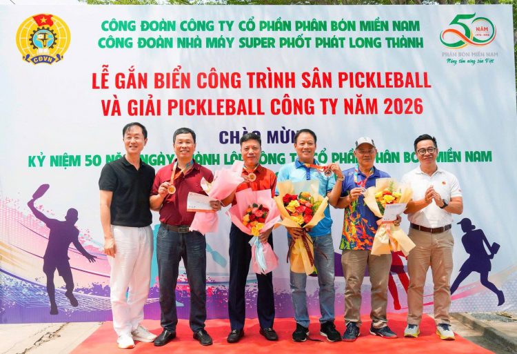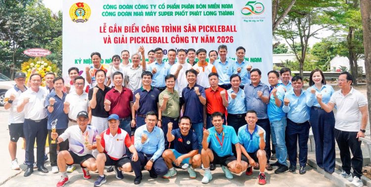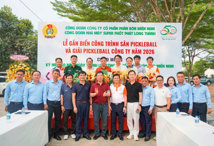 (CSPLO) – Hướng tới kỷ niệm 50 năm thành lập Công ty Cổ phần Phân bón Miền Nam(19/4/1976 19/4/2026), Công đoàn Công ty đã phối hợp với Nhà máy Super Phốt phát Long Thành tổ chức Lễ gắn biển công trình “Sân Pickleball” tại khu cư xá Nhà máy. Đây là công trình có ý nghĩa thiết thực, góp phần nâng cao đời sống văn hóa, tinh thần, rèn luyện sức khỏe cho người lao động, đồng thời thể hiện sự quan tâm của lãnh đạo doanh nghiệp và tổ chức Công đoàn đối với đội ngũ cán bộ, công nhân viên.