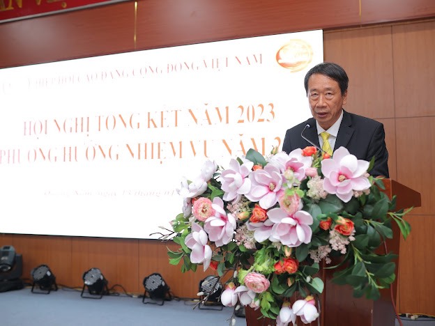 Phát biểu khai mac hội nghi, GS.TS. Phạm Tiết Khánh – Chủ tịch Hiệp hội khẳng định: “Hội nghị là dịp để đánh giá kết quả đạt được, phát huy những mặt mạnh, thành quả đạt được trong thời gian qua, xây dựng kế hoạch và giải pháp vượt qua khó khăn, thách thức, để triển khai thực hiện thành công các mục tiêu của Hiệp hội đề ra cho các năm tiếp theo. Quá trình xây dựng và phát triển, số lượng thành viên Hiệp hội đến nay là 92 thành viên. Năm 2023, Hiệp hội có nhiều hoạt động tích cực hỗ trợ, kết nối, chia sẻ kinh nghiệm quản lý và vận hành nhà trường, tuyển sinh, đào tạo, hợp tác quốc tế, đề xuất dự án để nâng cao năng lực cho các trường thành viên. Bên cạnh sự quan tâm, chỉ đạo của các Bộ, ban ngành, sự nỗ lực cố gắng của các đơn vị thành viên cùng với sự quan tâm giúp đỡ của bạn bè quốc tế, Hiệp hội CĐCĐ Việt Nam và các đơn vị thành viên đã thu hút nhiều chương trình hội thảo quốc tế, dự án quốc tế tham gia hợp tác; Hiệp hội đã đã ký kết Biên bản thỏa thuận ghi nhớ hợp tác với Hiệp hội Doanh nghiệp Việt Đài, Hiệp hội nội thất Nhật Bản (JIDA) với các nội dung xoay quanh các lĩnh vực: Tuyển sinh và đào tạo nguồn nhân lực, thi đặc định các ngành xây dựng, chuyển giao công nghệ, kỹ thuật, phương thức đào tạo giữa hai bên; Tổ chức các chương trình thăm và làm việc lẫn nhau để trao đổi, chia sẻ và học hỏi kinh nghiệm; Hợp tác hỗ trợ lẫn nhau trong xây dựng, đào tạo, hiểu biết về văn hóa, ngôn ngữ… Đặc biệt, năm 2023, Trung tâm Hỗ trợ tư vấn đào tạo và Phát triển nguồn nhân lực cộng đồng (Trung tâm Kiểm định CATD) trực thuộc Hiệp hội CĐCĐ Việt Nam, đã tích cực tổ chức nhiều hoạt động tập huấn, hướng dẫn cán bộ, viên chức, nhà giáo của các đơn vị trong và ngoài Hiệp hội trong công tác xây dựng hệ thống bảo đảm chất lượng, tự đánh giá chất lượng cơ sở giáo dục nghề nghiệp và đã được Tổng cục Giáo dục nghề nghiệp – Bộ Lao động – Thương binh và xã hội cùng các Trường đánh giá cao…”