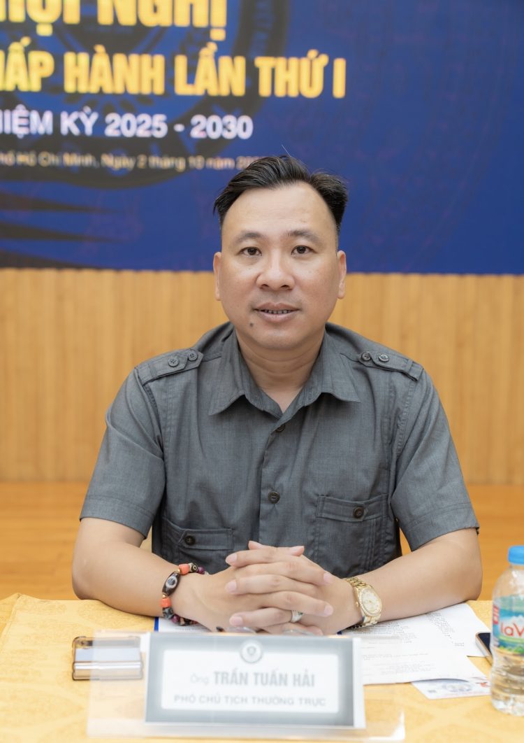 Phó Chủ tịch Thường trực Hiệp hội Trần Tuấn Hải chia tóm tắt sơ lượt về quá trình hoạt động của Hiệp hội trong quý III, phương hướng hoạt động quý IV, năm 2025