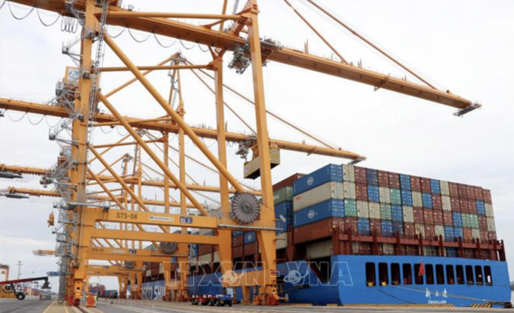 Xếp dỡ TEU tại Cảng quốc tế TIL Cảng Hải Phòng. Ảnh tư liệu: Mạnh Tú/TTXVN