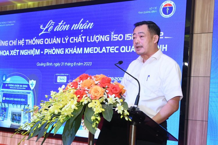 BSCKII. Lê Thanh Tuân – Phó Giám đốc Sở Y tế tỉnh Quảng Bình phát biểu chúc mừng Phòng khám Đa khoa MEDLATEC Quảng Bình được công nhận là đơn vị y tế đầu tiên tại tỉnh Quảng Bình vinh dự nhận chứng chỉ quốc tế này