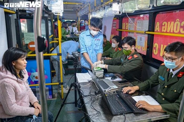 Công an TP Hà Nội cấp căn cước công dân gắn chip cho người dân trên xe buýt lưu động. (Ảnh: Đắc Huy)