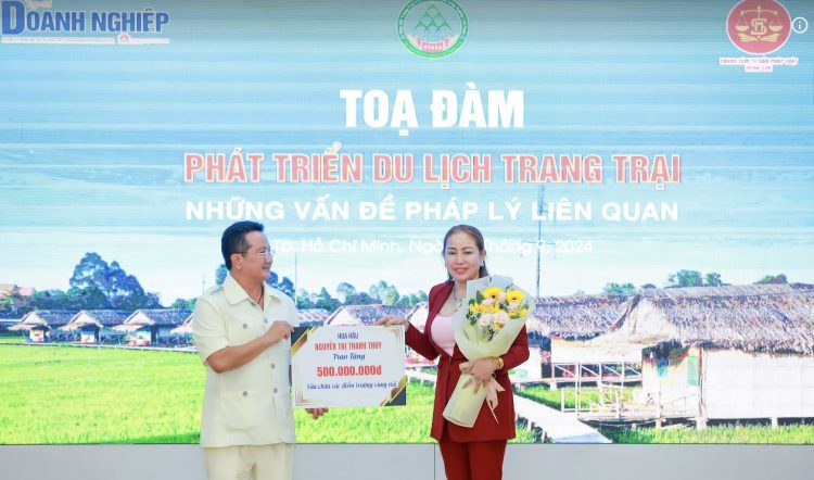 Dịp này, Tạp chí Doanh nghiệp và Trang trại Việt Nam tiếp nhận biểu trưng 500.000.000VND từ nữ doanh nhân hoa hậu Nguyễn Thị Thanh Thuý ủng hộ sữa chữa các điểm trường vùng núi phía Bắc do ảnh hưởng bão lũ vừa qua. Đồng thời, ghi nhận sự hỗ trợ, đồng hành cùng tạp chí tổ chức toạ đàm lần này thành công tốt đẹp.
