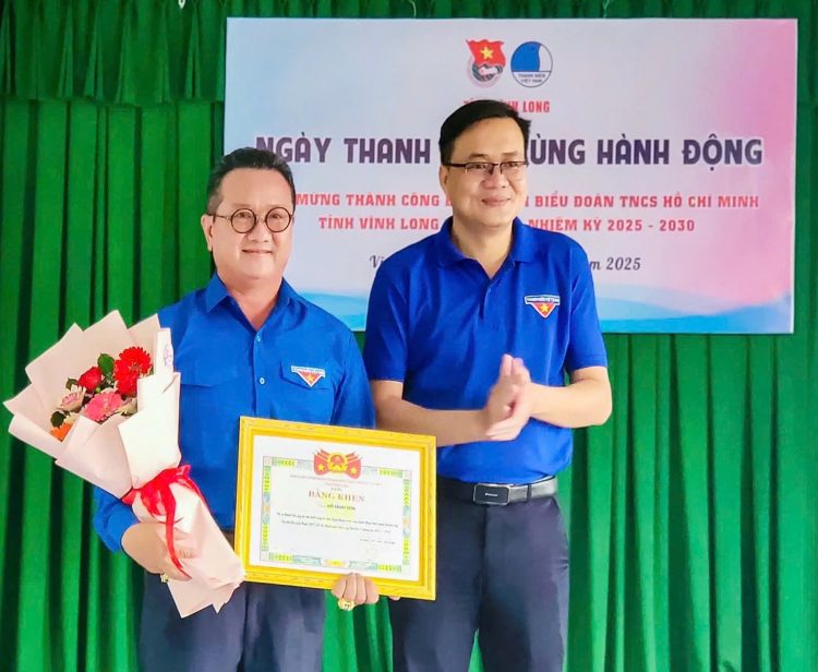 Dịp này, nhằm ghi nhận về thành tích ủng hộ vật chất trong tổ chức Ngày thanh niên cùng hành động chào mừng thành công Đại hội Đại biểu Đoàn TNCS Hồ Chí Minh tỉnh Vĩnh Long nhiệm kỳ I, nhiệm kỳ 2025 – 2030, BCH Đoàn TNCS Hồ Chí Minh tỉnh Vĩnh Long đã tặng bằng khen cho ông Hồ Minh Sơn.
