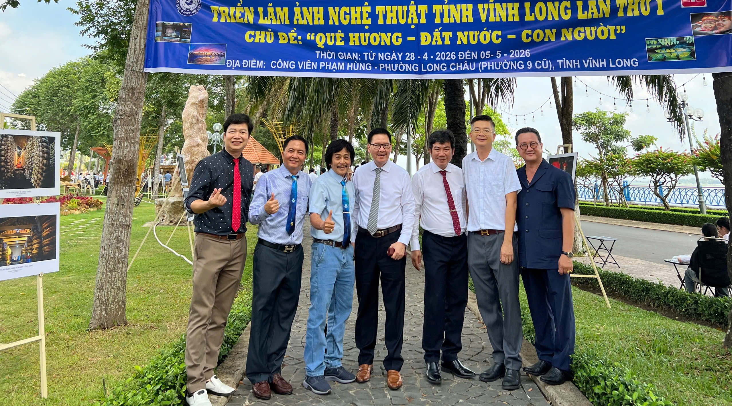 Cụ thể, vào sáng 28/4/2026, tại khuôn viên công viên phường Long Châu, tỉnh Vĩnh Long, Ban Chấp hành Chi hội Nghệ sĩ Nhiếp ảnh Việt Nam tỉnh Vĩnh Long phối hợp cùng Hội Văn học Nghệ thuật tỉnh tổ chức Lễ khai mạc Triển lãm ảnh nghệ thuật lần thứ I với chủ đề “Quê hương-Đất nước-Con người”.